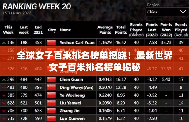 转载请注明来自四川春秋旅游有限责任公司锦绣路分社,本文标题:《全球女子百米排名榜单揭晓!最新世界女子百米排名榜单揭秘》
